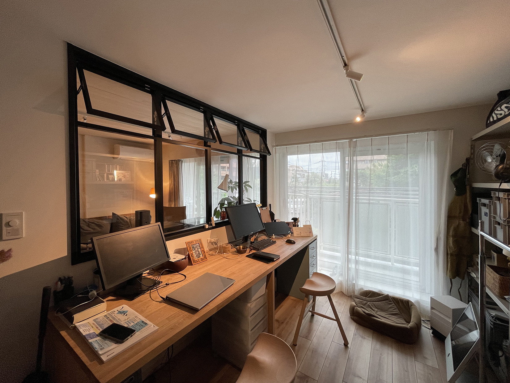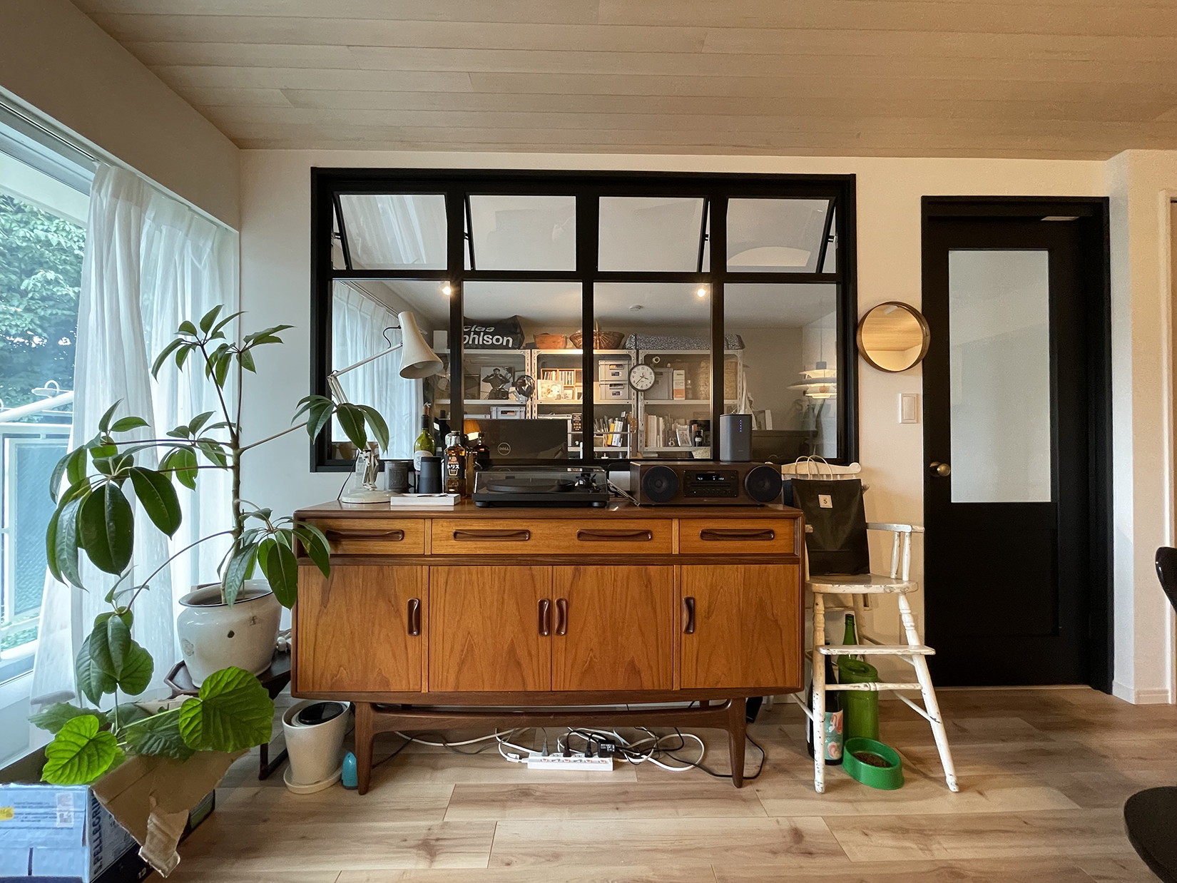 オーナー所有のセンスの良い家具と、オーディオ機器などでコーディネートされた空間は、何十年もそこに生活していたかのような、よい雰囲気がでています。